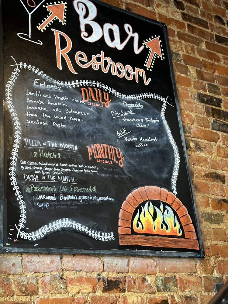 basil pesto, wood-fired sirloin, roasted mushrooms, caramelized onions, bleu cheese, tomato sauce